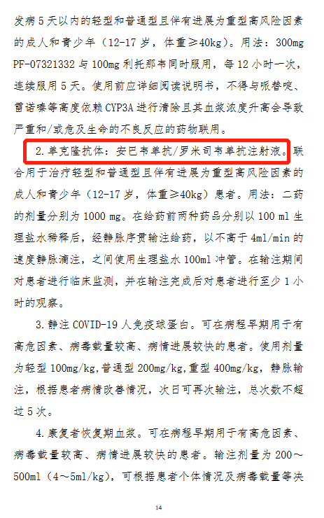 此外,被纳入新冠诊疗方案第九版的化药有:利托那韦片(Paxlovid)、安巴韦单抗/罗米司韦单抗注射液、地塞米松、甲泼尼龙、白细胞介素6(IL-6)抑制剂托珠单抗、低分子肝素、普通肝素等产品。