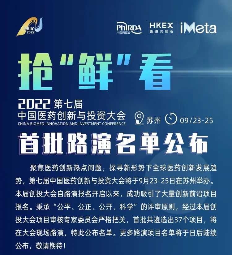 抢“鲜”看|第七届中国医药创新与投资大会首批路演名单公布